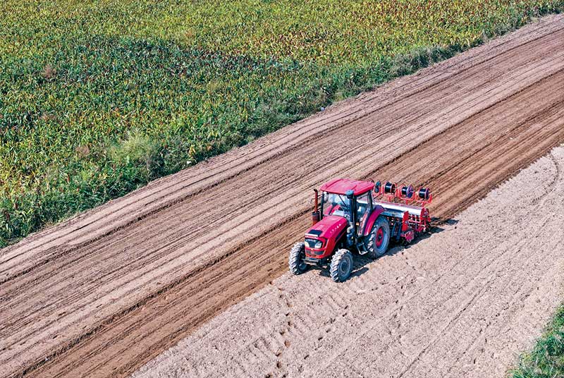 平遙縣寧固鎮豐依村村民們正在機播小麥